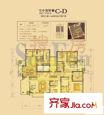 万城华府别墅户型图叠加官邸C-D户型 5室3厅4卫2厨