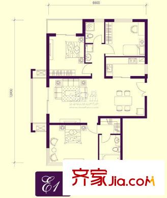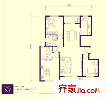 普罗旺斯户型图户型图 3室2厅2卫1厨