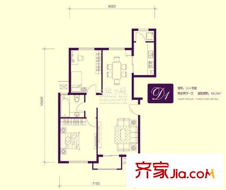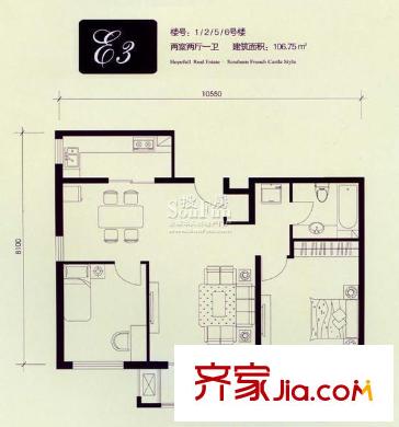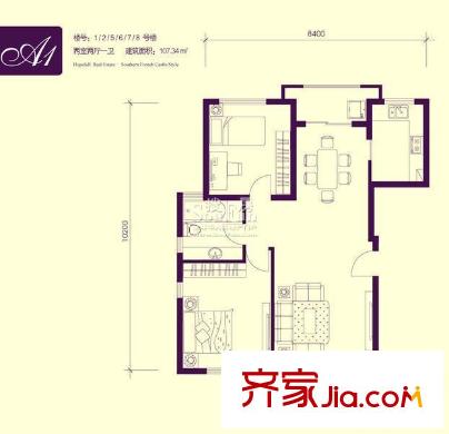 普罗旺斯户型图户型图 2室2厅1卫1厨