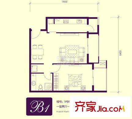 普罗旺斯户型图户型图 1室2厅1卫1厨