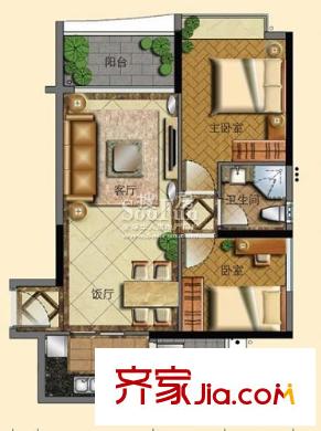 佳大银湾户型图A3栋02单位 2室2厅1卫1厨