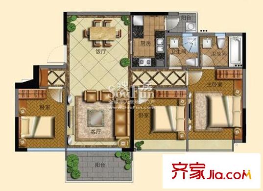 佳大银湾户型图A3栋03单位 3室2厅2卫1厨