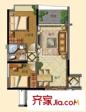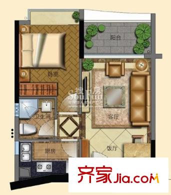 佳大银湾户型图A3栋01单位 1室2厅1卫1厨