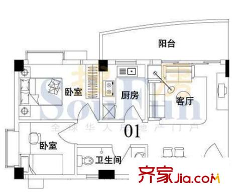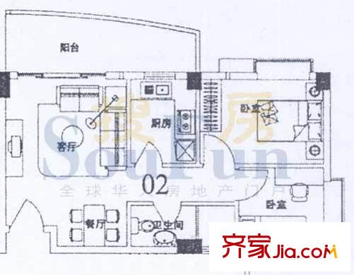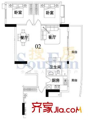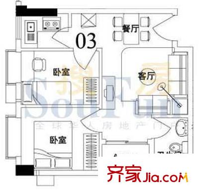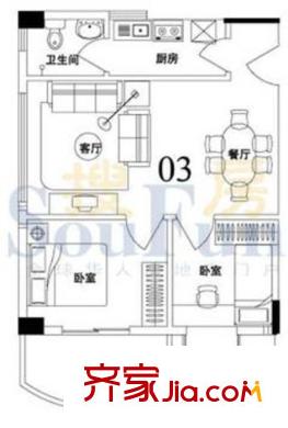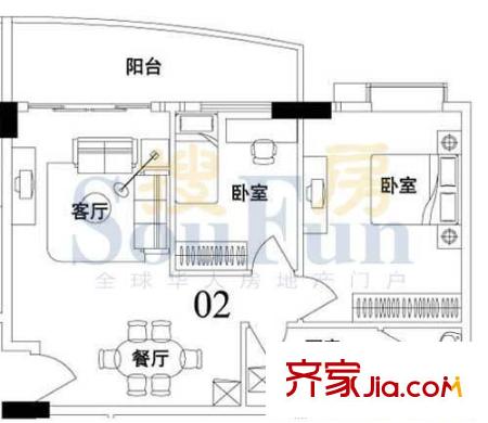 索丽苑户型图2室2厅户型图 2室2厅1卫1厨