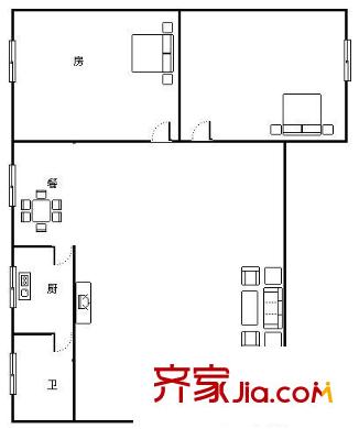 侨诚花园冬日苑户型图2室2厅户型图 2室2厅1卫1厨