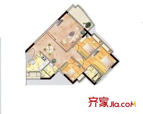 自由心岸户型图3室2厅户型图 3室2厅2卫1厨