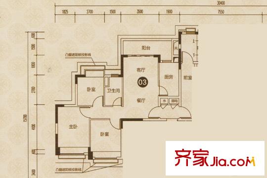 恒大御府7栋03户型 3室2厅1卫1厨