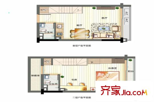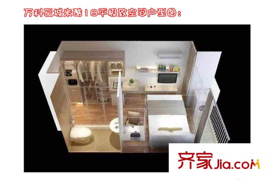 万科云城米酷18平公寓户型3D图 1室1厅1卫1厨