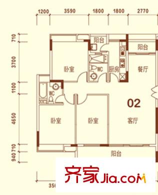 卡布奇诺户型图(2014-07-10) 3室2厅2卫1厨