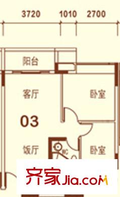 卡布奇诺65.14㎡八号楼3梯03户型2室2厅1卫