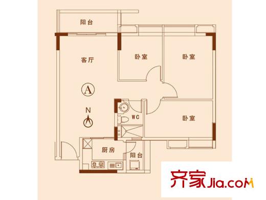 卡布奇诺78.75㎡八号楼2梯03户型3室1厅1卫1厨