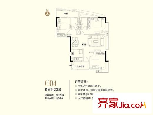 翠屏・瀚宇贵都二期C04户型图 3室2厅2卫1厨