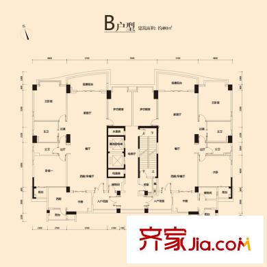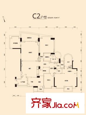 白云堡豪苑尚云名邸C2户型 3室2厅3卫1厨