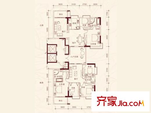 南国公馆D1栋01单位户型图 6室3厅3卫1厨