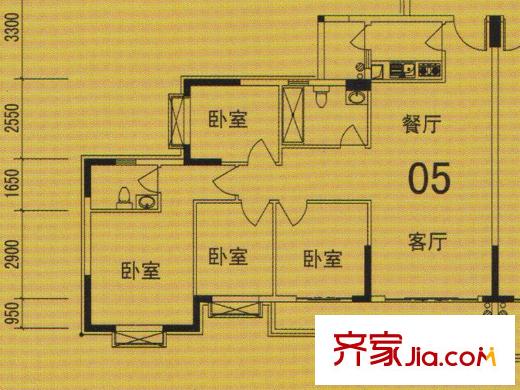 顺丰翠园2#05户型 4室2厅2卫1厨