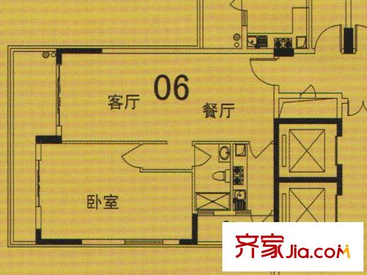 顺丰翠园2#06户型 1室2厅1卫1厨