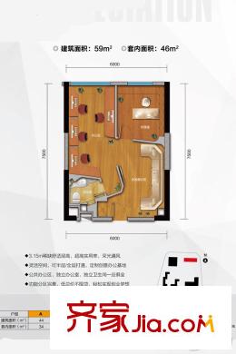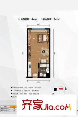 绿地汇创国际平层公寓A户型 1室1厅1卫1厨