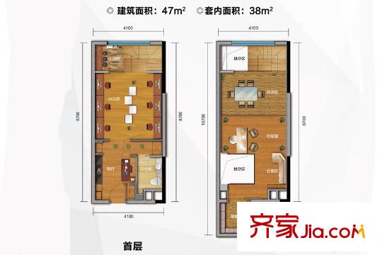 绿地汇创国际平层办公C户型 1室1卫