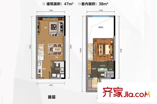 绿地汇创国际平层公寓A户型 1室1厅1卫1厨