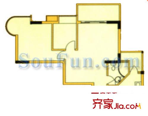 中源御品A栋1单元户型图 1室2厅1卫1厨
