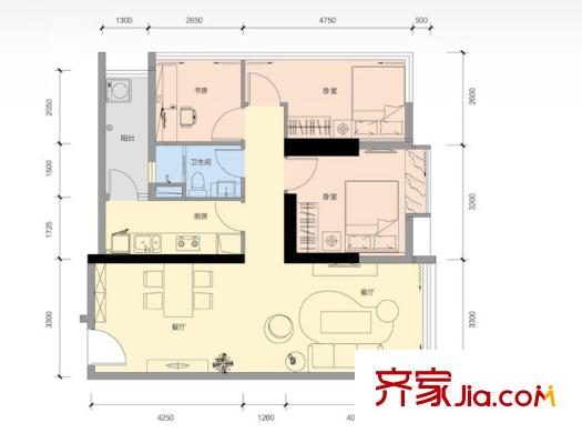 中铁盛德国际公寓户型图2室2厅户型图 2室2厅1卫1厨