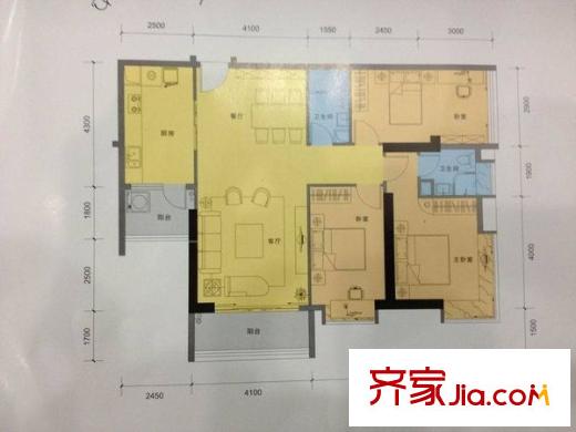 中铁盛德国际公寓户型图3室2厅户型图 3室2厅2卫1厨