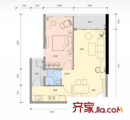 中铁盛德国际公寓户型图07单元 1室2厅1卫1厨