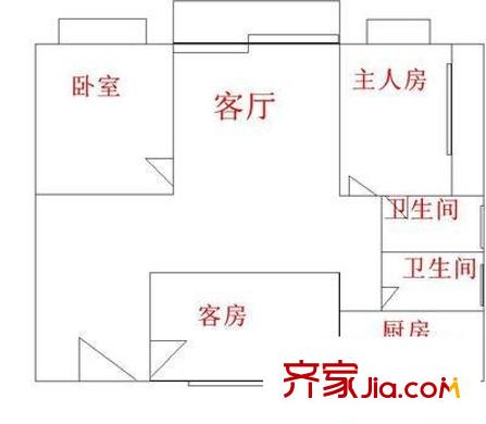 华翠居户型图3室1厅户型图 3室1厅2卫1厨