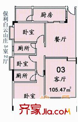 保利白云山庄户型图3室2厅户型图 3室2厅2卫1厨