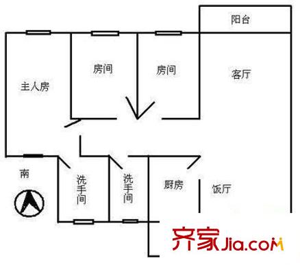 保利白云山庄户型图2室2厅户型图 2室2厅1卫1厨
