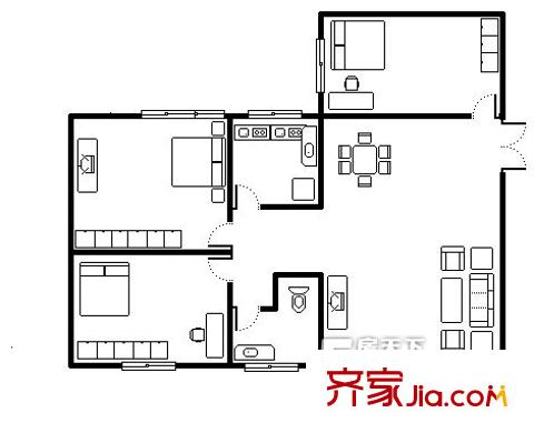 六运小区户型图3室1厅户型图 3室1厅1卫1厨