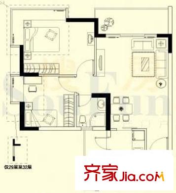 新怡苑户型图2室2厅户型图 2室2厅1卫1厨