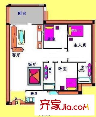 新怡苑户型图3室2厅户型图 3室2厅2卫1厨