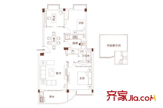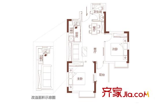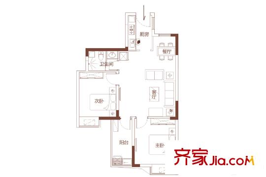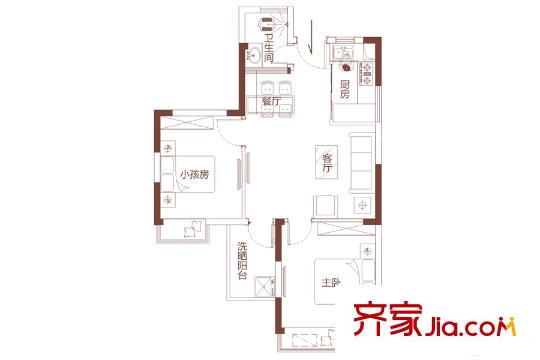 龙居沃城洋房A3户型 3室2厅1卫1厨