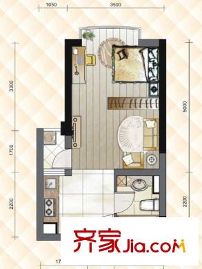 红谷经典户型图红谷 经典 一居室户型图 1室1厅1卫1厨
