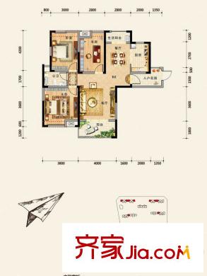 济民可信艾溪康桥一期高层7#B3户型 3室2厅2卫1厨