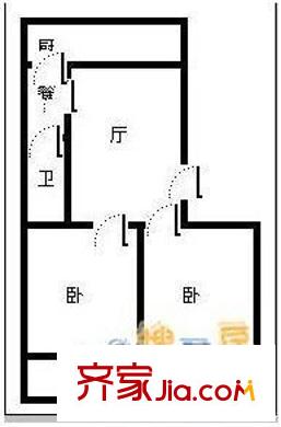 都司前单位宿舍 2室 户型图