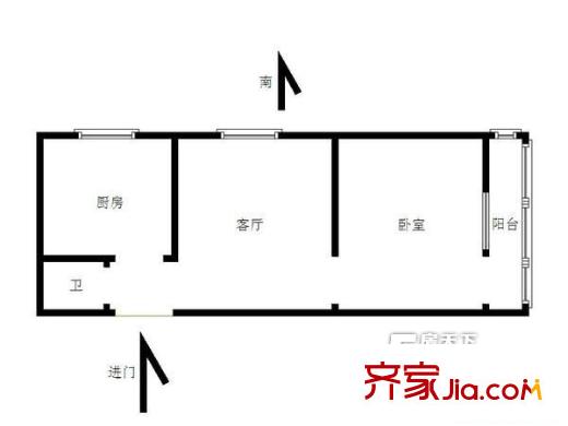 都司前单位宿舍 一居室户型图
