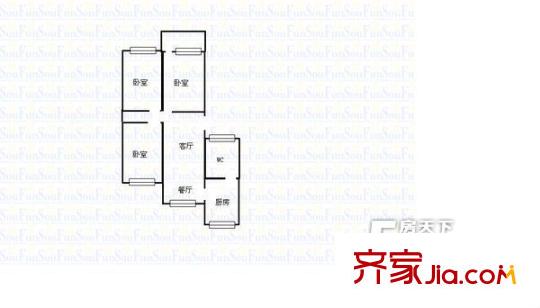 师大南路手表厂宿舍 三居室户型图