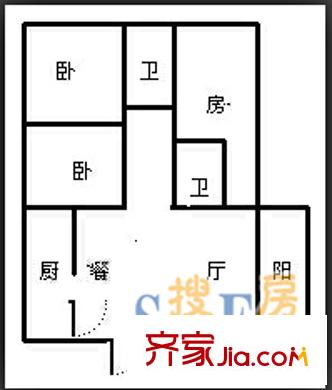 南京东路公安局宿舍户型图南京东路公安分局宿舍 3室 户型图 3室2厅2卫1厨