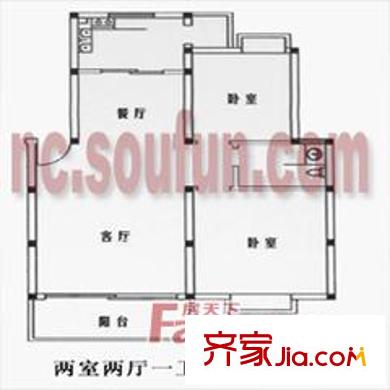 景江豪城二期田沁园户型图景江豪城二期田沁园 户型图 2室2厅1卫1厨