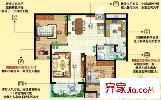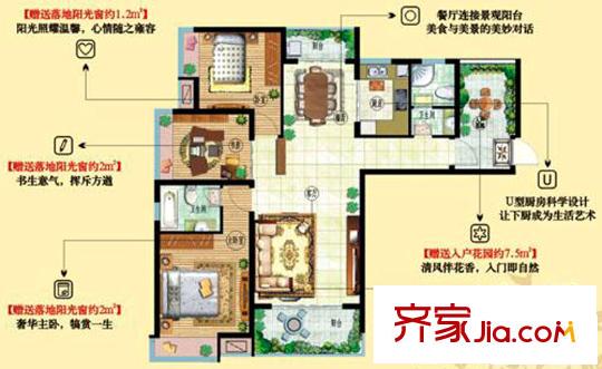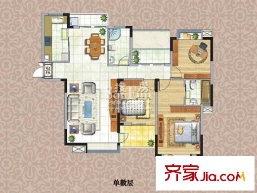玺园户型图三期B户型(售罄) 3室2厅2卫1厨