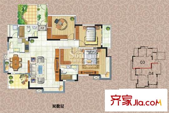 玺园户型图D户型双数层 3房2厅2卫 137.39-141.21平方米 3室2厅2卫2厨