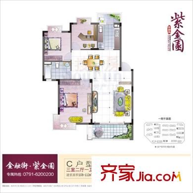 紫金园一期 3室 户型图