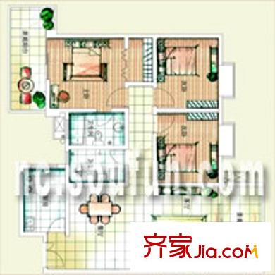星港小镇户型图三室二厅一厨二卫 3室2厅2卫1厨