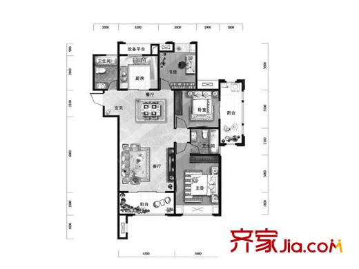 正荣御朝阳二期御尊一期高层1#C1户型图 3室2厅1卫1厨
