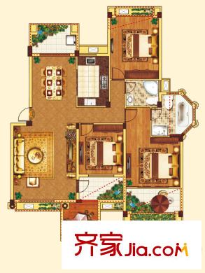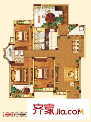 中大城5#、6#洋墅户型D3 3室2厅2卫1厨