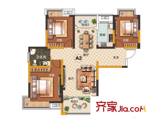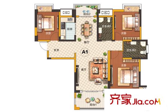 凯旋公馆127.00㎡户型3室2厅2卫QQ