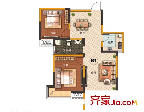 凯旋公馆106.00㎡2户型2室2厅1卫QQ