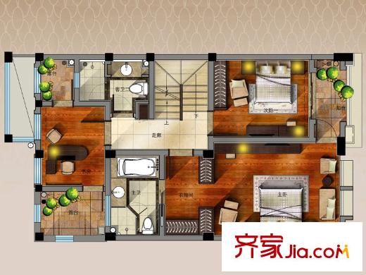 御湖国际湖居别墅C户型二层平面图 5室3厅5卫1厨
